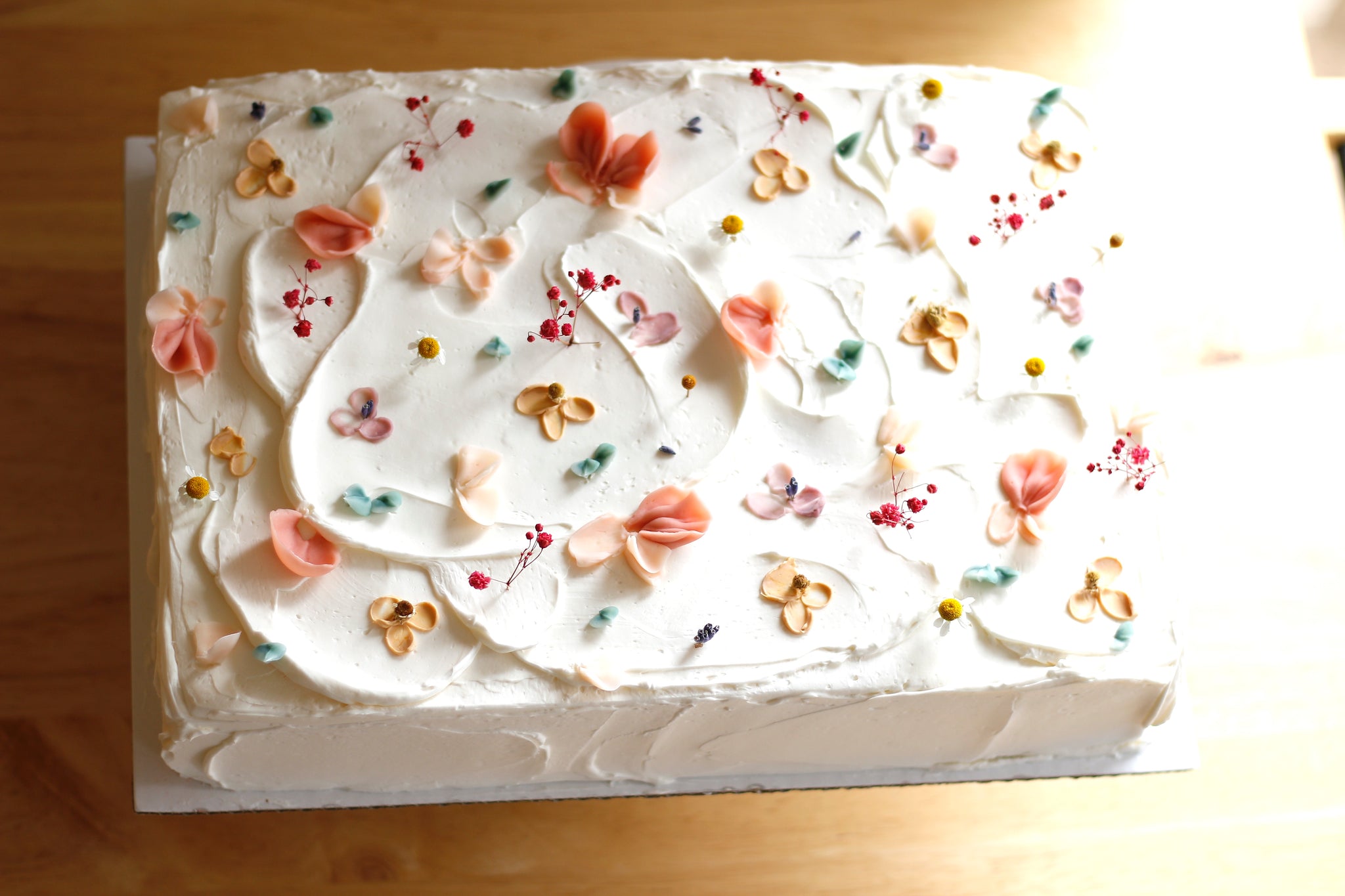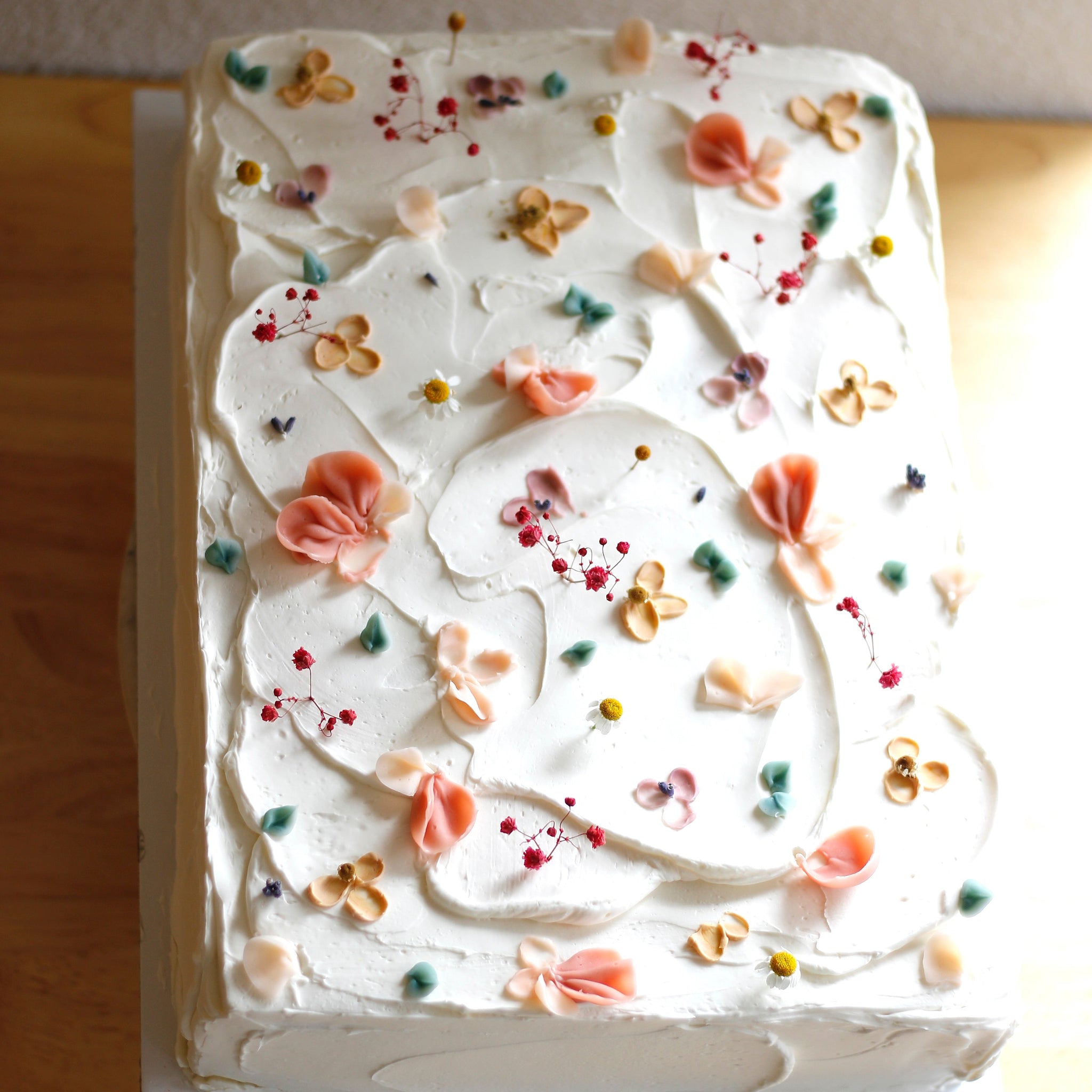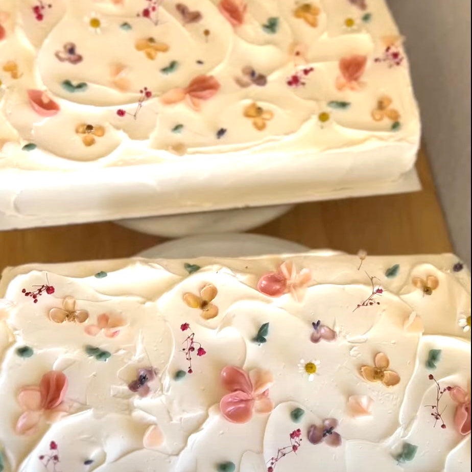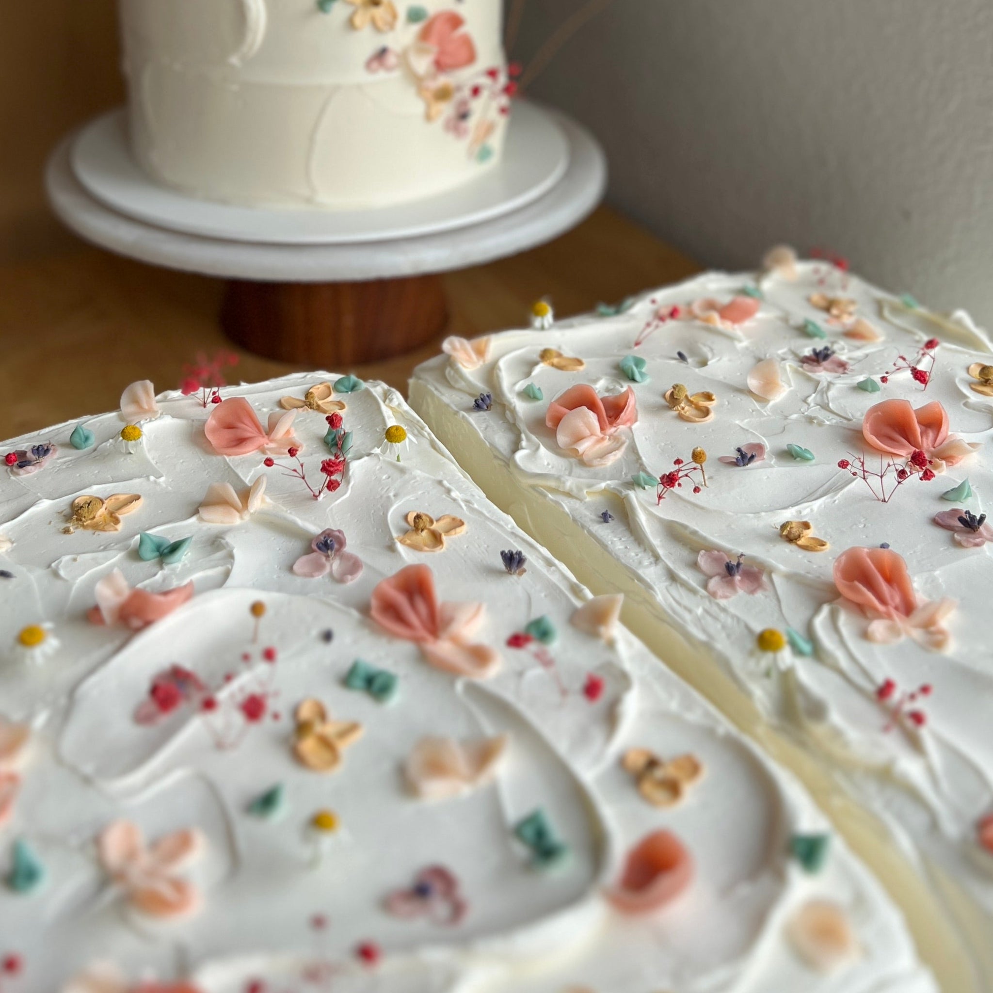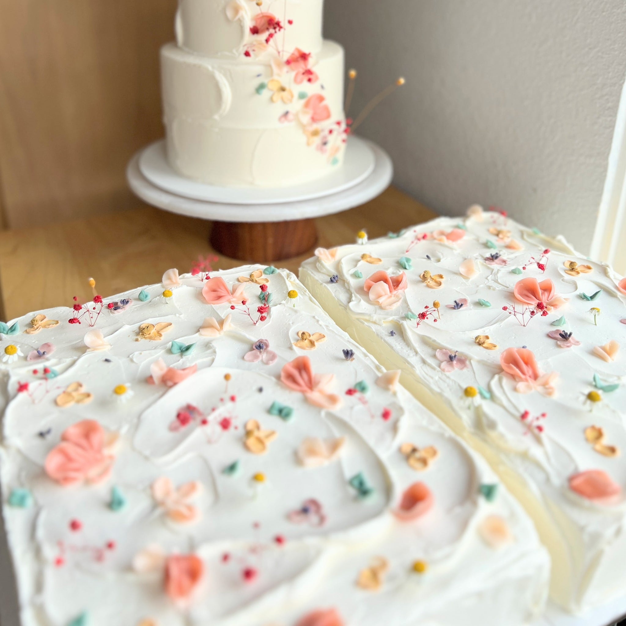 The Wildflower Sheet is designed with creamy buttercream, gentle textures, and hand-piped florals. This is the kind of cake that belongs at the center of the table.